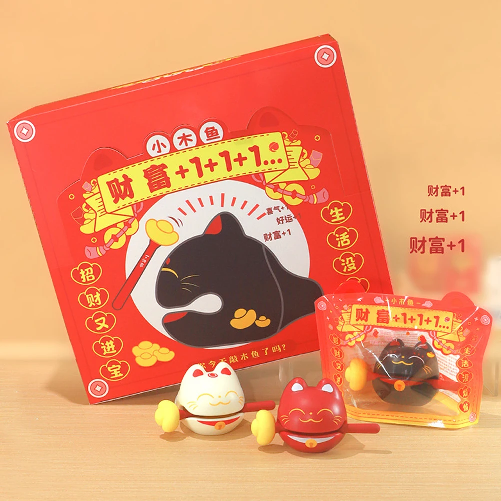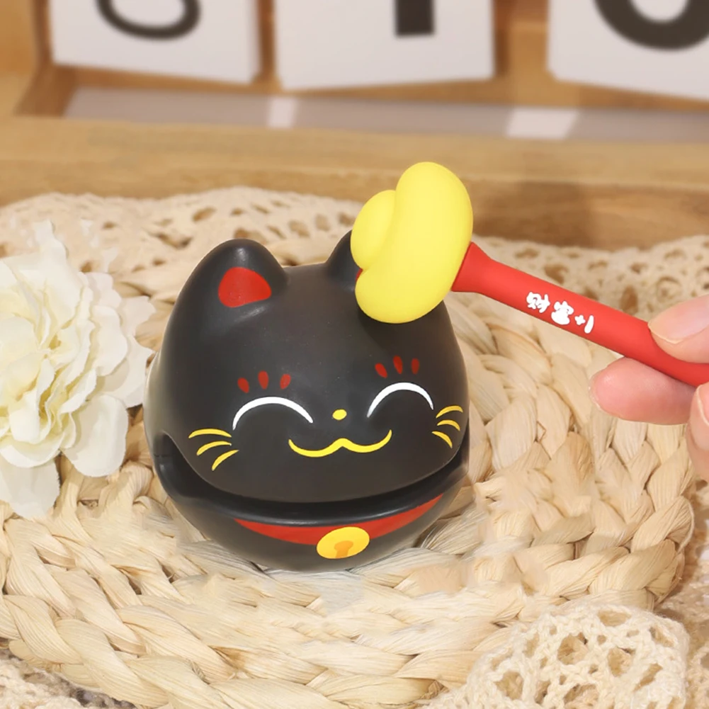Zen Block Drum Mokugyo Lucky Cat Shape Wood Fish Temple Block Ornament