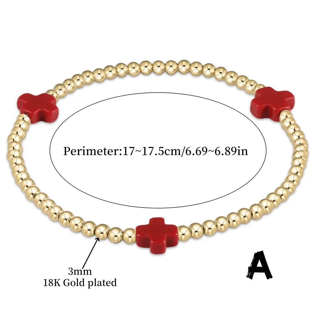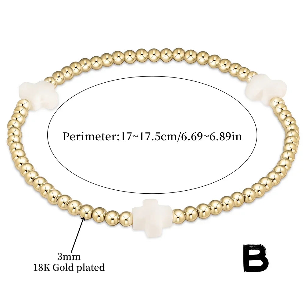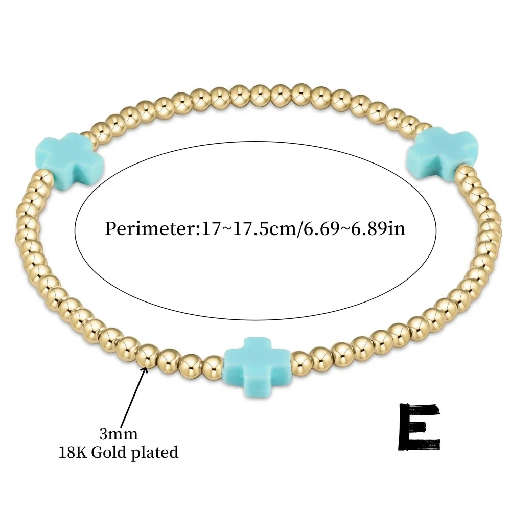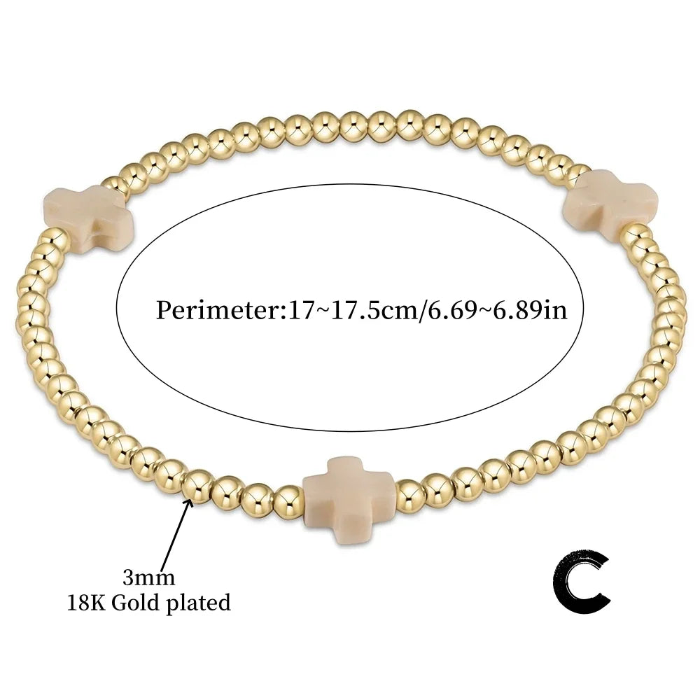 Vlen Cross Stackable Bracelet – 18K Gold Plated Waterproof Boho Jewelry for Women